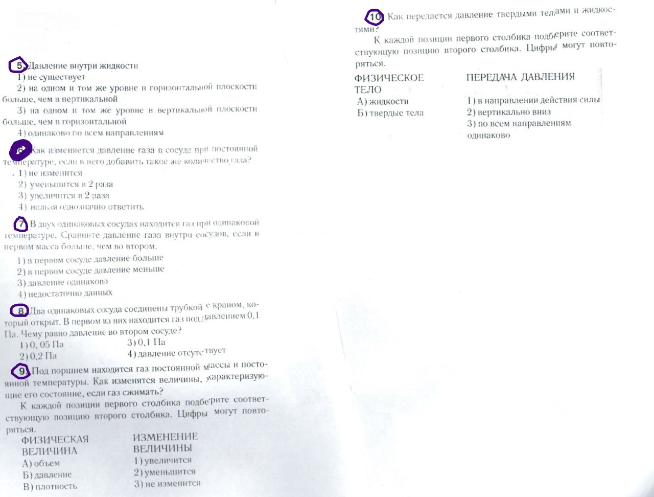 4) - при увеличении объёма увеличивается число молекул в сосуде - ложь в четвёртом задании не могу разобрать рисунки