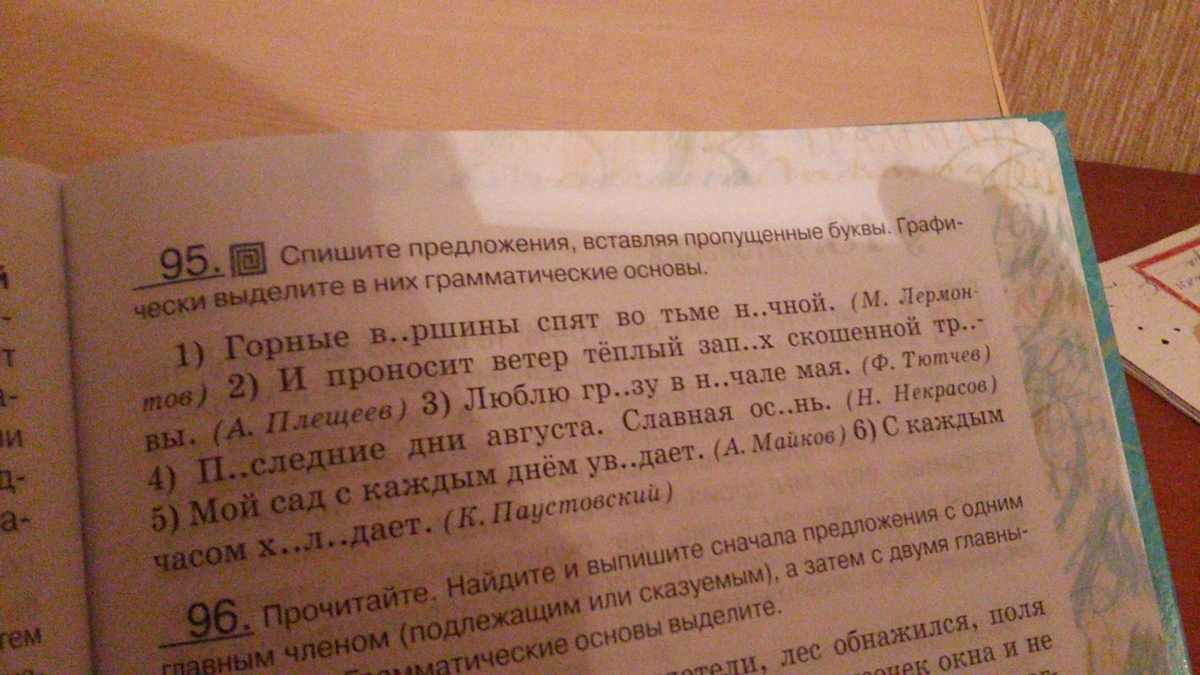 Горные вершины(сущ.одной чертой) спят(гл.двумя чертами) во тьме ночной.