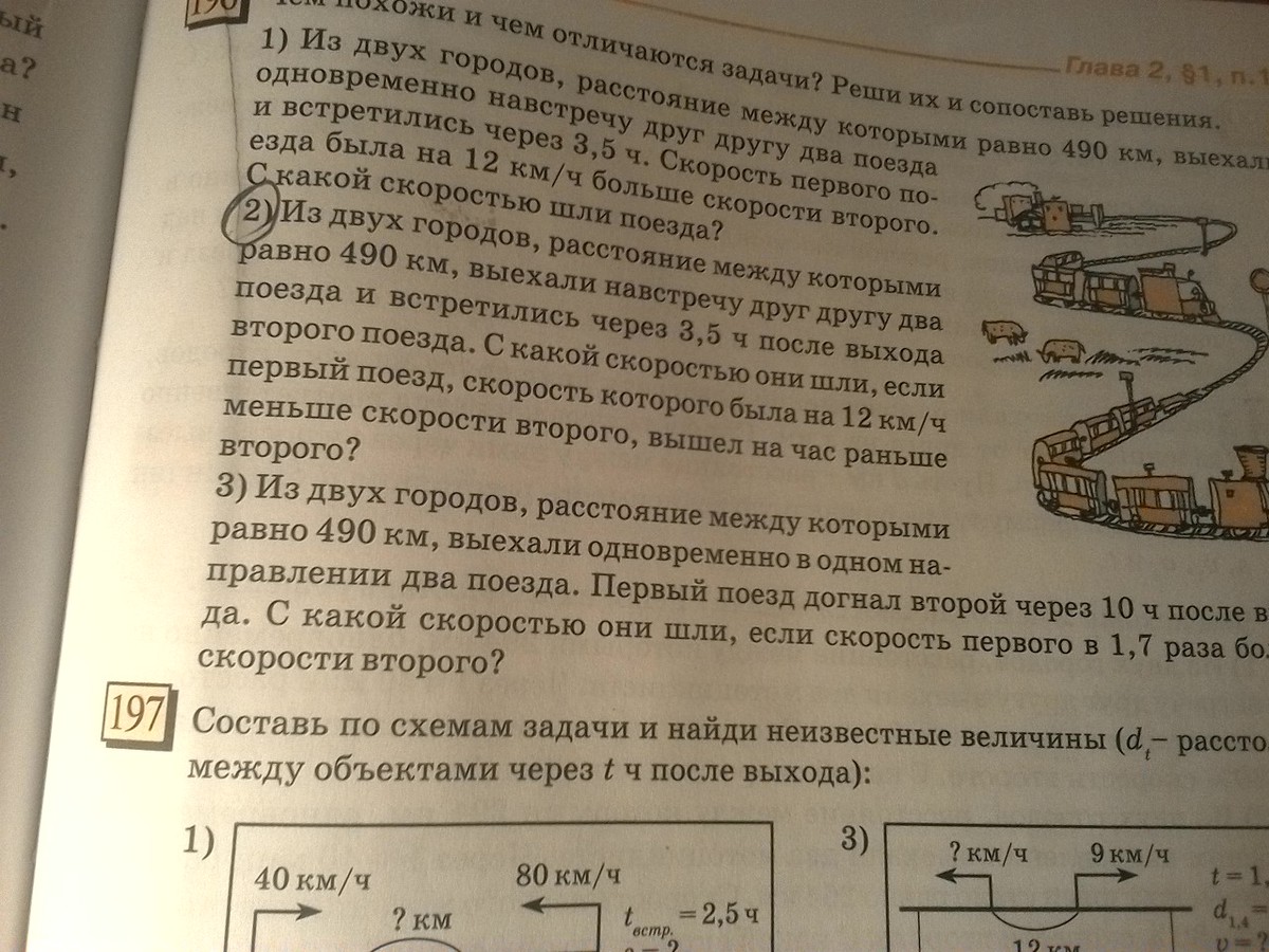 Пусть х (км/ч) - скорость первого поезда, тогда х + 12 (км/ч) - скорость второго поезда. Первый поезд был в пути 4,5 ч и проехал 4,5 * х (км), второй поезд был в пути 3,5 ч и проехал 3,5 * (х + 12) км. Уравнение: