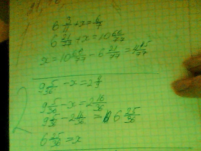 1)6 целых 3/11+x=10 целых 6/7 2)9 целых 5/36-х=2 целых 4 /9 3)x-5 целых 17/60=7 целых 9/20.