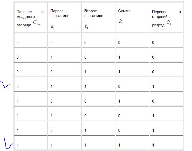 суммировании одноразрядных двоичных чисел,равных 1 будет равен 1, а