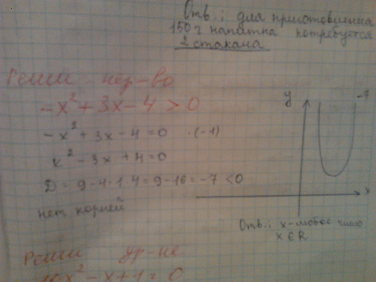 вы же на (-1) домножали. Вам нужны те иксы, для которых парабола (которую вы нарисовали) НИЖЕ оси абсцисс. Верный ответ - решений нет.
