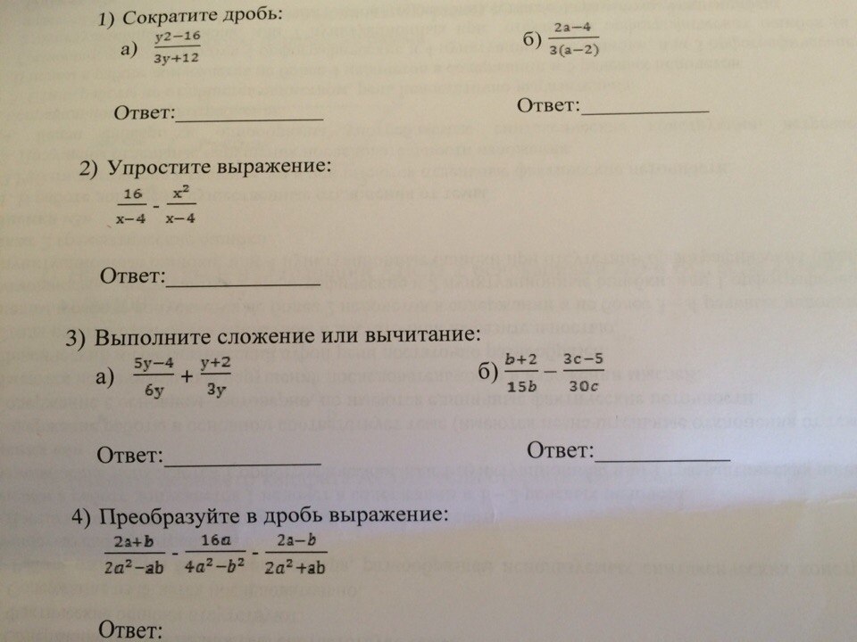№3а) =(5у - 4 + 2(у + 2))/6у = 5у - 4 + 2у + 4)/6у = 7у/6у = 7/6