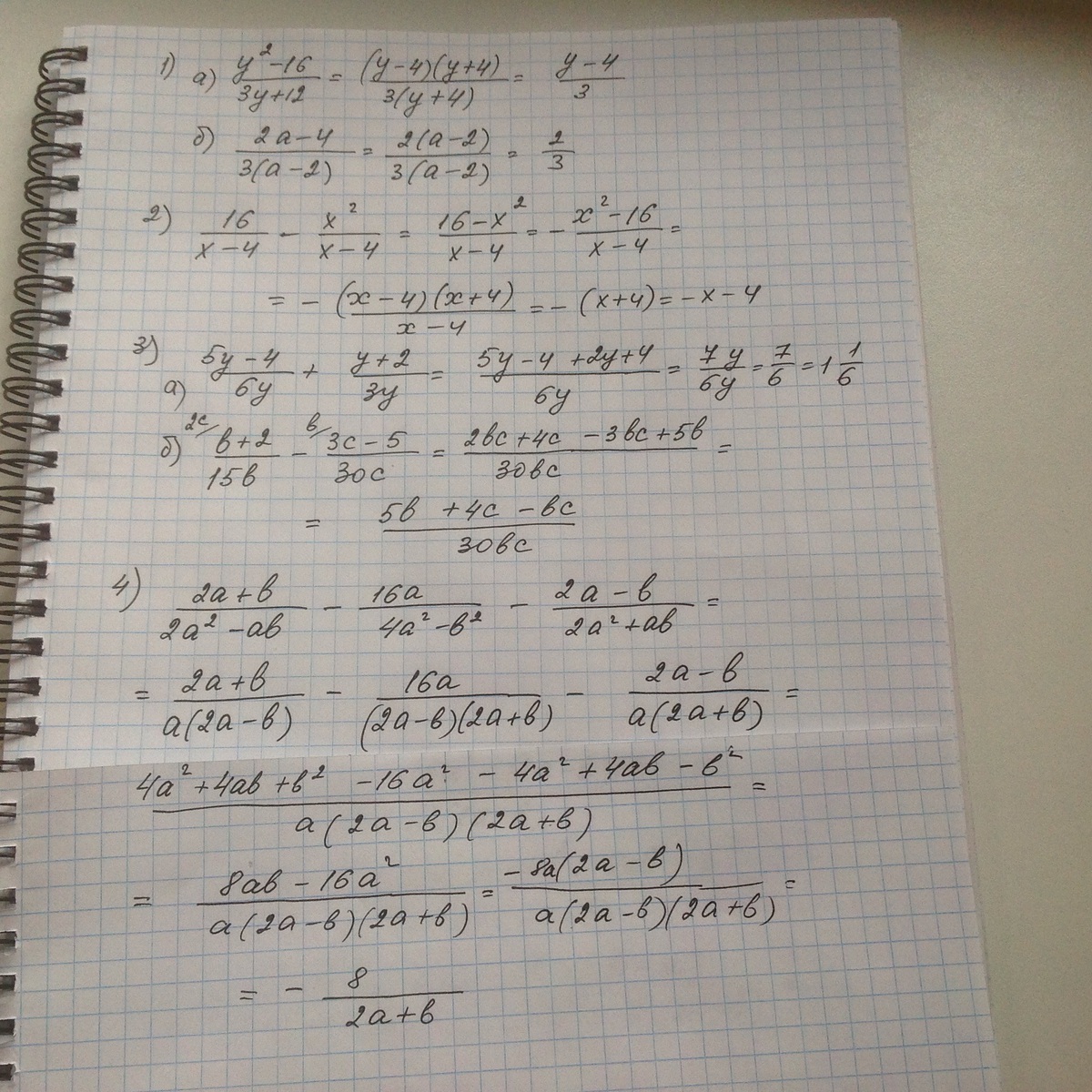 №1 а) = (у - 4)(у + 4)/(3(у+4) = (у - 4)/3