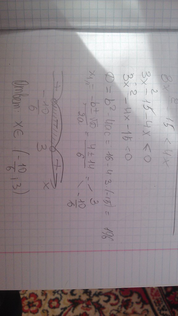 Переносим в одну сторону 3X^2-4X-15<0,решаем квадратное уравнение и находим X1=-5/3 ,X2=3.Это парабола Y=3X^2-4X-15 значит Y<0 при -5/3<X<3