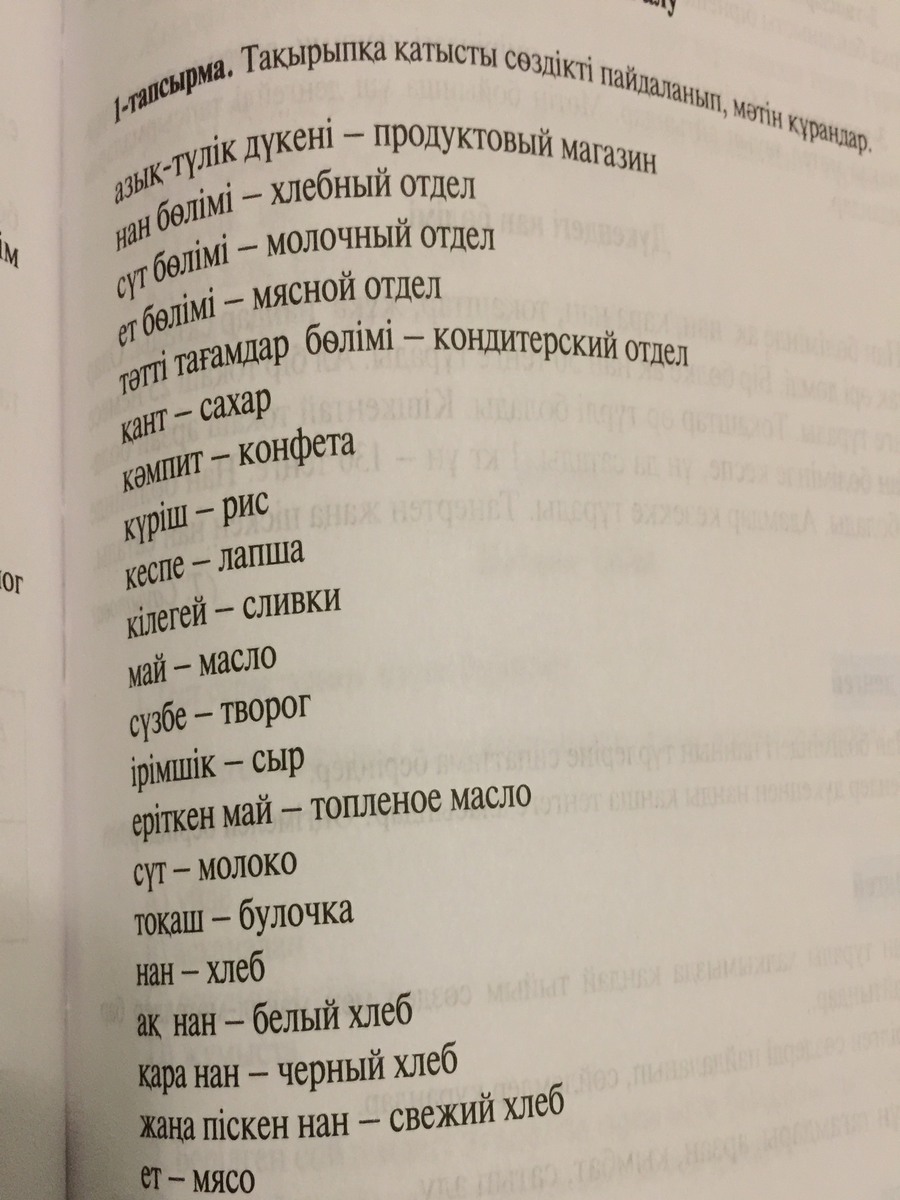 Мен анама дукенге барып комектесемин. Ен биринши,мен азык-тулик дукенине кирип,нан болимине,сут болимине киремин, ол жерден ак нан,май,сузбе, сут,токаш аламын. Маган дукен аралау унайды