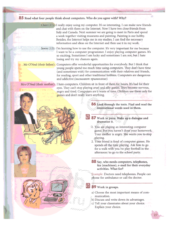 Я действительно наслаждаюсь использованием компьютера. Это так интересно. Я могу завести новых друзей и общаться с ними по интернету. Теперь у меня есть два лучших друга из Италии и Канады. Следующим летом мы встретимся в Париже и проведём неделю вместе, посещая в музеи и занимаясь рисованием. Рисование - наше общее хобби. Помимо этого, интернет помогает мне с учёбой. Я могу найти важную информацию и идеи в интернете, а потом применить их в моей работе.