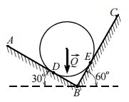 В прямоугольном желобе с абсолютно гладкими стенками лежит шар весом Q = 12 Н. Определите силы со стороны жёлоба на шар в точках D и E
