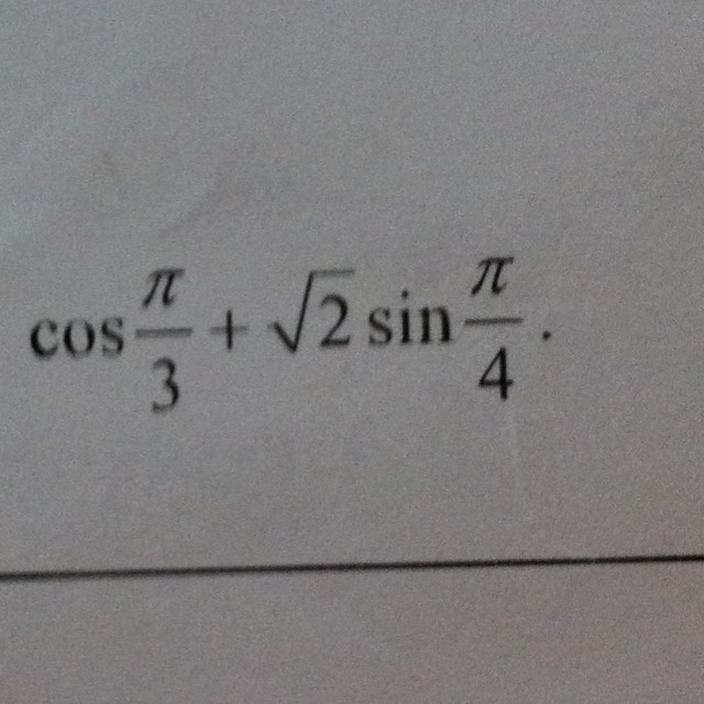 cos(п/3)+sqrt2*sin(п/4)=1/2+sqrt2*sqrt2/2=1/2+1=1,5