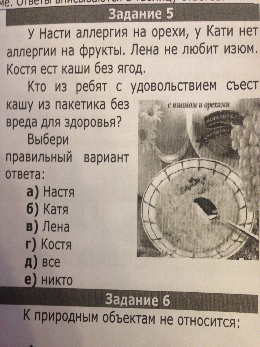 б) Катя, т.к. у нее нет аллергии, и любит фрукты