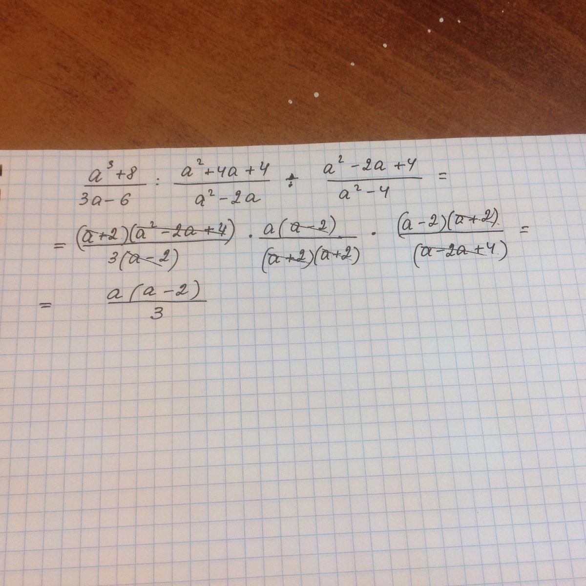 =(a+2)(a²-2a+4)/3(a-2) *a(a-2)/(a+2)²*(a-2)(a+2)/(a²-2a+4)=a(a-2)/3