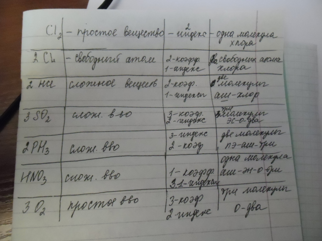 Определите форму химического элемента (простое вещество, сложное вещество, свободные атомы); указать индексы и коэффициенты; пояснить обозначение записи.