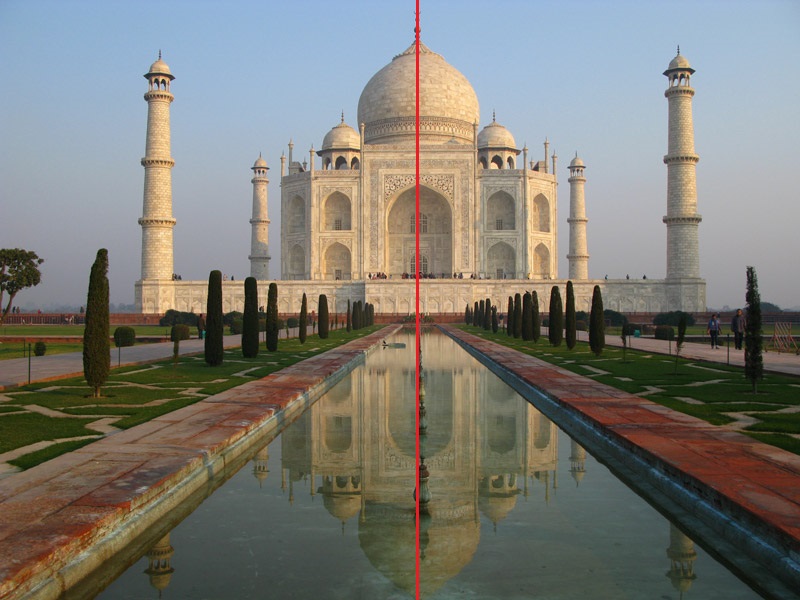 Эйфелева башня имеет ось симметрии, Тадж-Махал в Индии