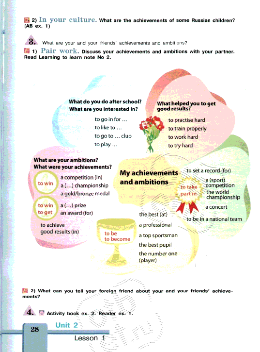 Нужно ответить на вопросы в синим лепестке вопрос: что ты делаешь после школы? Ты должен ответить: I go ...