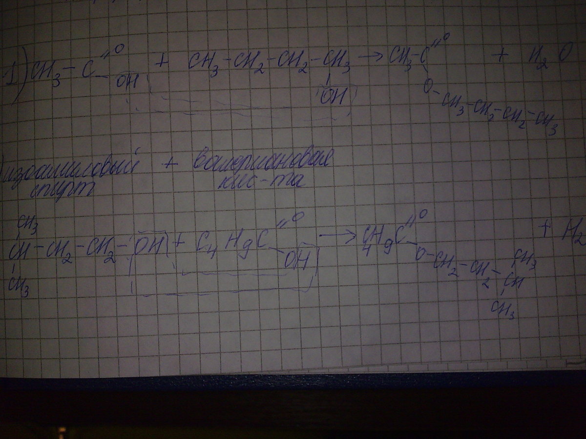 уравнение реакции этерификации, с помощью которой можно получить А) бутилацетат Б) изоамилвалериат