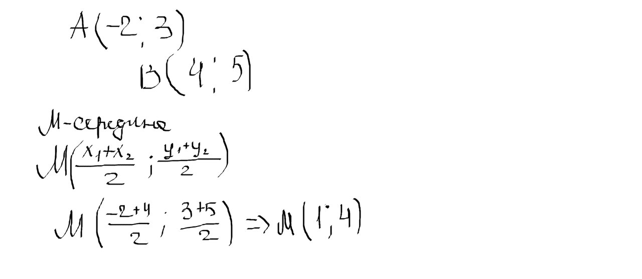 по теореме о координатах середины отрезка. каждая координата середины отрезка равна полусумме одноименных координат этого отрезка