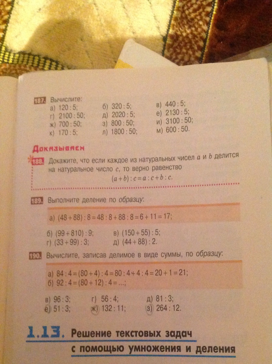 в) 96 / 3 = (90 + 6) / 3 = 90 / 3 + 6 / 3 = 30 + 2 = 32