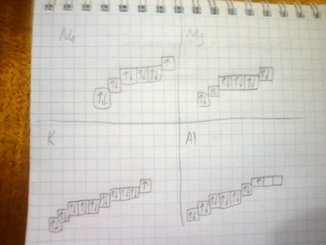 изобразите схемы строения следующих металлов:а)натрия б)магния в)калия г)аллюминия.Запишите их электронные формулы