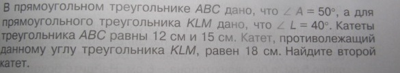 триугольники АВС и КЛМ - подобные( за тримя углами)