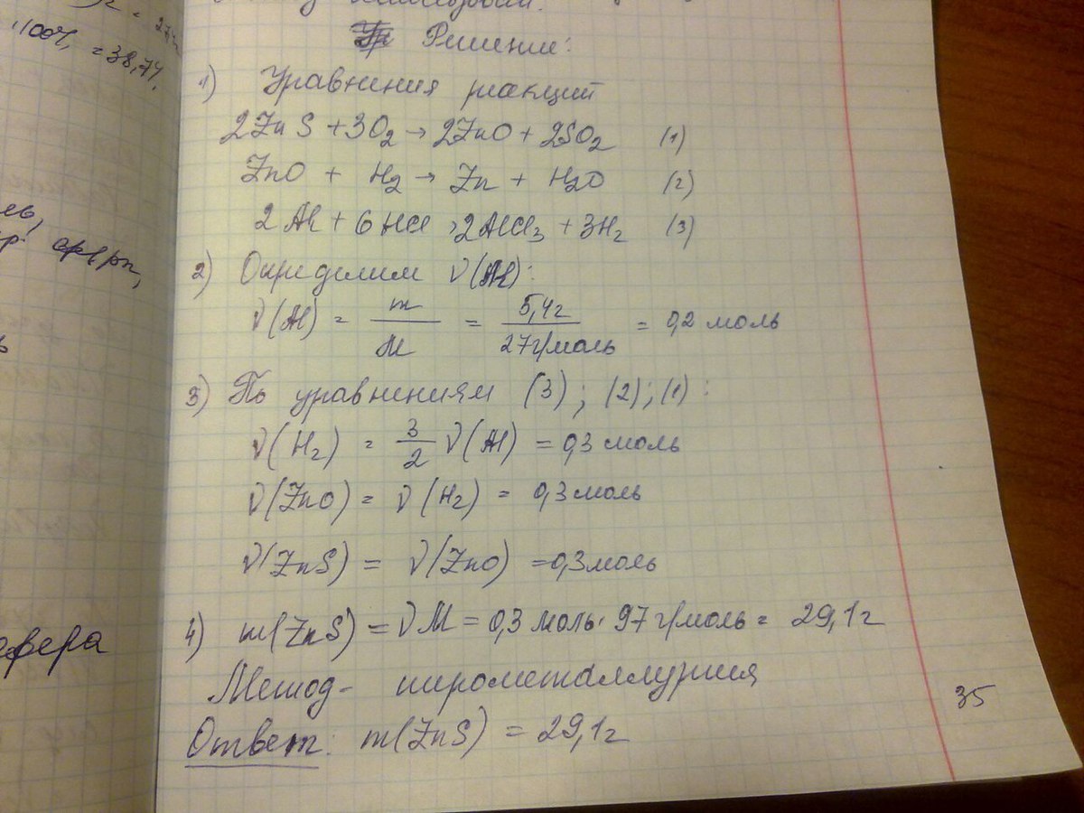 кислотой. Какова масса сульфида цинка, подвергшегося обжигу? Какой способ получения металла используется?