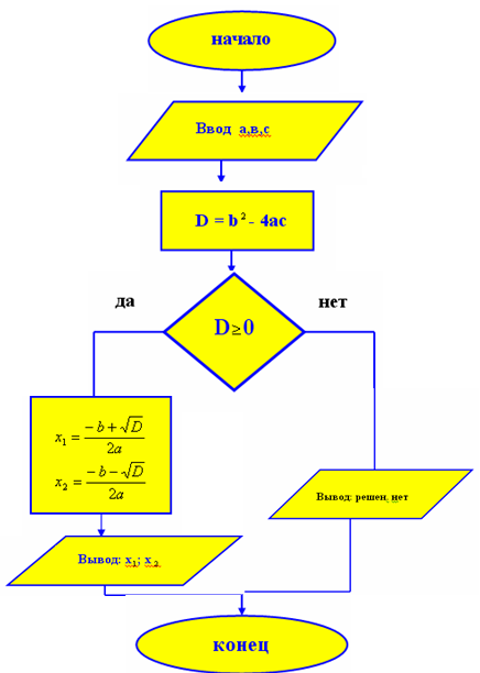 1. Алгоритма уравнения не существует! Ведь алгоритм - это последовательность действий, приводящая к определённому результату, поэтому правильней будет алгоритм решения или алгоритм нахождения корней.