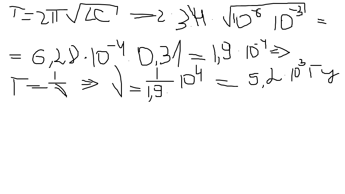 Какова частота свободных электромагнитных колебаний в контуре, емкость конденсатора которого равна 1мкФ, а индуктивность катушки - 1мГн ?