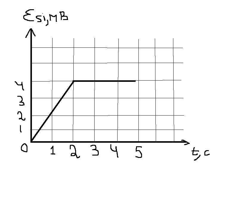 При изменении силы тока в замкнутом контуре индуктивностью L=0.1 Гн ЭДС самоиндукции изменялась согласно графику . Найдите изменение силы тока в контуре в интервале времени 1-4 с.