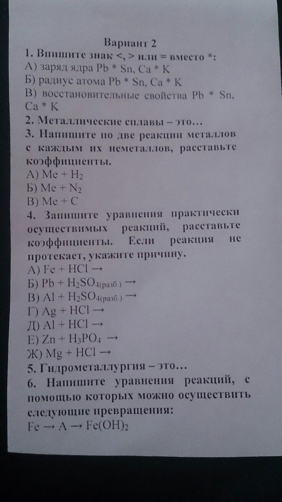 В четвёртом задании не идёт реакция Г), остальные все идут, реакции похожи, вытесняется водород.