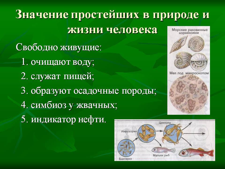 Простейшие животные - это одноклеточные животные) В жизни человека и животных обитают одноклеточные паразиты - мы же болеем. ТОЕСТЬ РОЛЬ - ВЫРАБОТКА ИММУНИТЕТА. Про остальное вот картинка тебе: