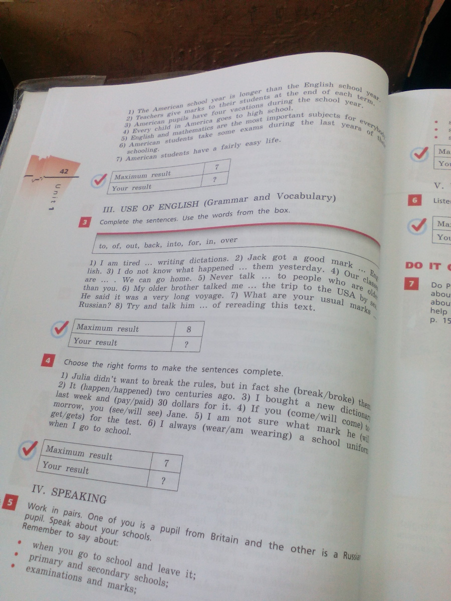 3-е задание 1-of 2-for 3-to 4-out 5-back 6-over 7-in 8-into