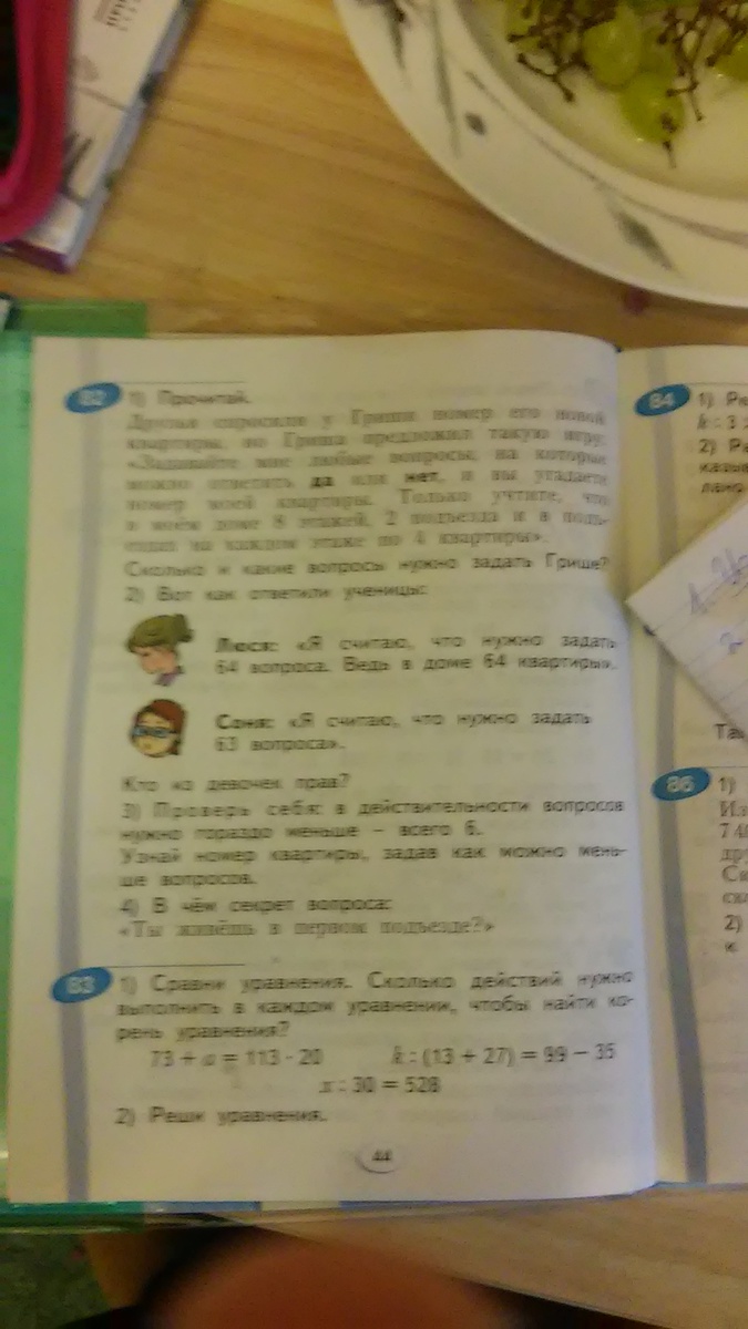 друзья. спросили у Гриши номер его новой квартиры на Гриша предложил такую игру Задайте мне любые вопросы на которые можно ответить да или нет Угадайте номер моей квартиры только учтите что в моем доме 8 этажей 2 подъездов подъездов на каждом этаже по 4 квартиры