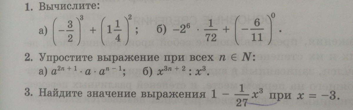 №1 а) (-3/2)^3+(5/4)^2=(-27/8)+(25/16)=(-27*2+25)/16=-29/16