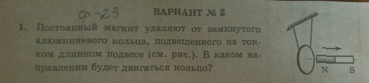 Постоянный магнит удаляют... (смотри фото) В каком направлении будет двигаться кольцо?