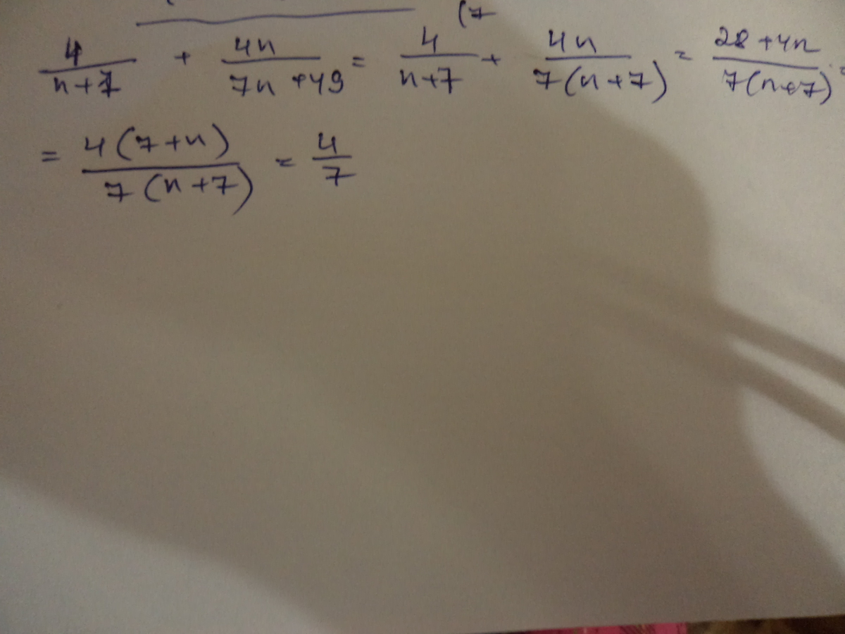 4/(n+7)+4n/7(n+7)=(28+4n)/7(n+7)=4(7+n)/7(n+7)=4/7