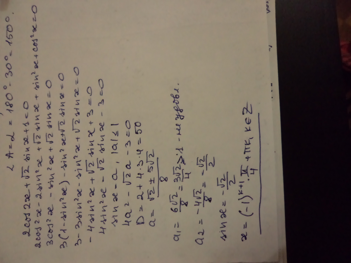 a2=(√2+5√2)/8=3√2/4⇒sinx=3√2/2>1 нет решения