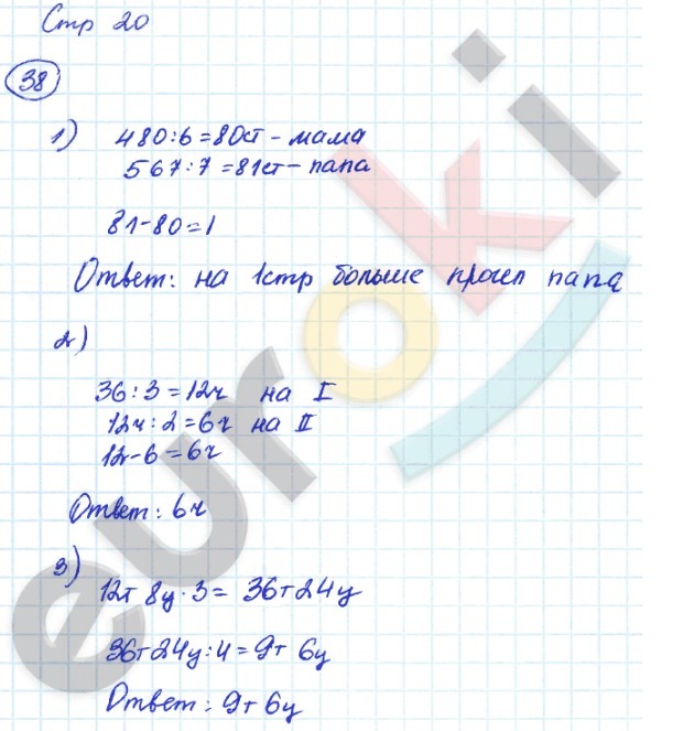 задачи 1) Мама прочитала шестую часть книги, в которой 480 страниц, а отец— седьмую часть книги, в которой 567 страниц. Кто прочитал страниц больше и на сколько? 2) В автобусе ехало 36 человек. На первой остановке из автобуса вышла треть пассажиров. На второй остановке — половина от оставшегося числа пассажиров. Сколько человек осталось в автобусе после второй остановки, если ни на одной из остановок в автобус не вошёл не один пассажир? 3) Треть урожая составляет 12 т 8 ц. Сколько тонн составляет четвёртая часть всего урожая?