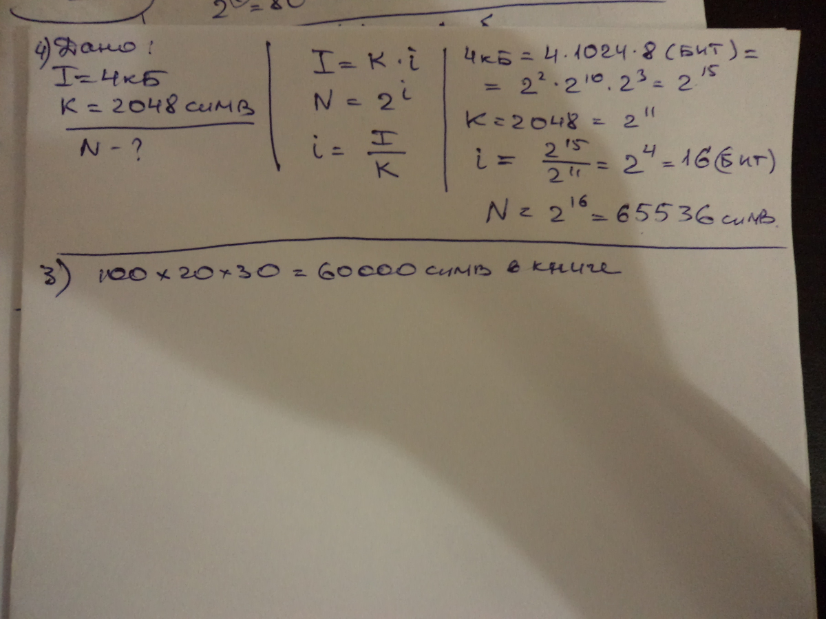 4)-Информационное сообщение объёмом 4 Кбайт содержит 2048 символов. Сколько символов содержит алфавит этого сообщения ?