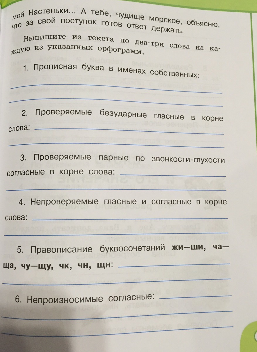 Выпишите из текста по два-три слова на каждую из указанных орфограмм. Фото