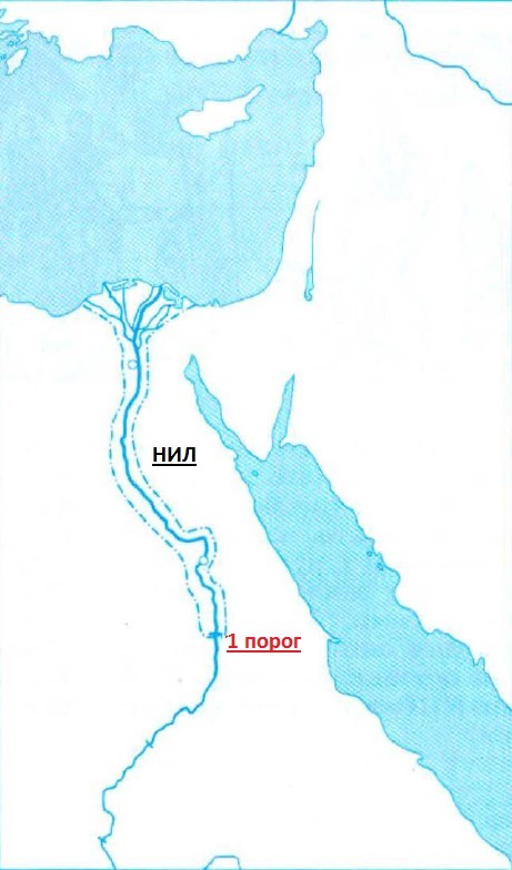 Напишите название реки протекающей через Египет и обозначьте на ней первый порог :