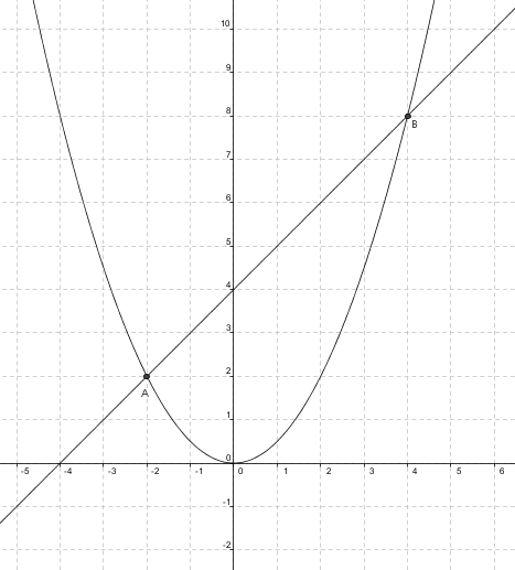 Ответ: -2, 4. (абсциссы точек пересечения)