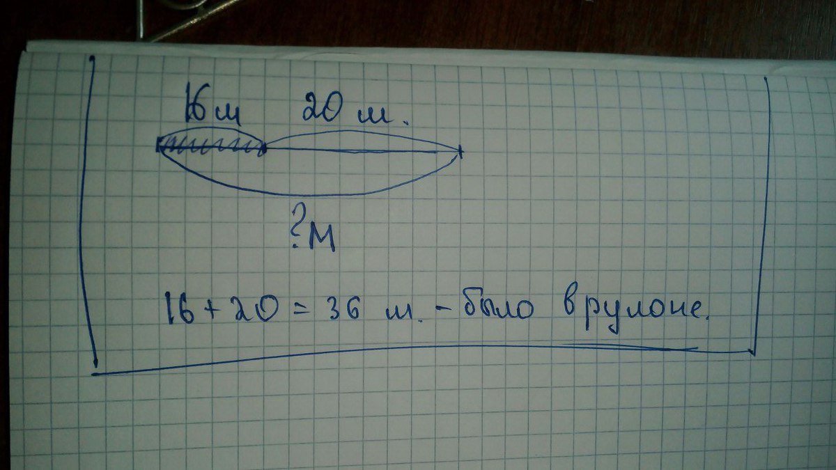 составить схему задачи от рулона обоев отрезали 16 метров. в рулоне осталось 20 метров. сколько метров обоев было в рулоне