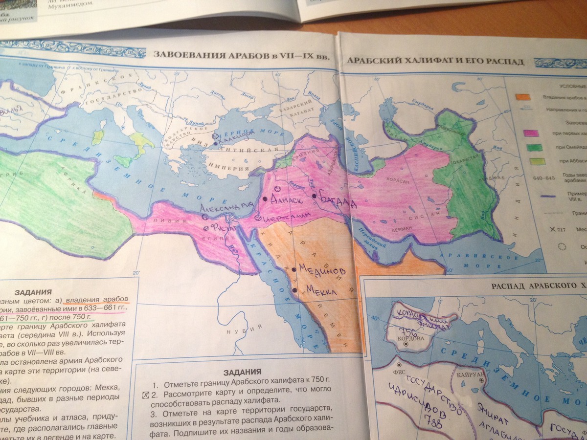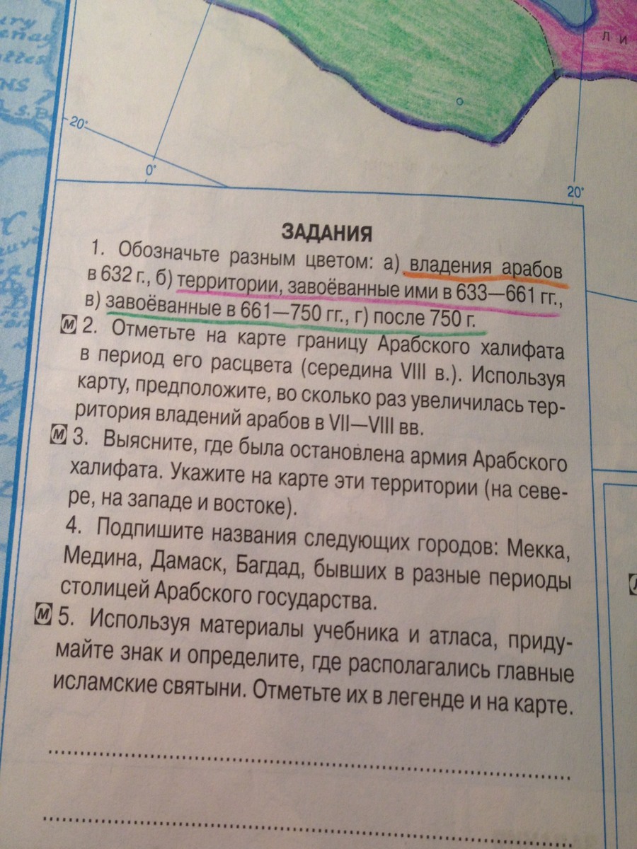 Используя материалы учебника и атласа, придумайте знак и определите, где располагались главные исламские святыни. Отметьте из в легенде и на карте.
