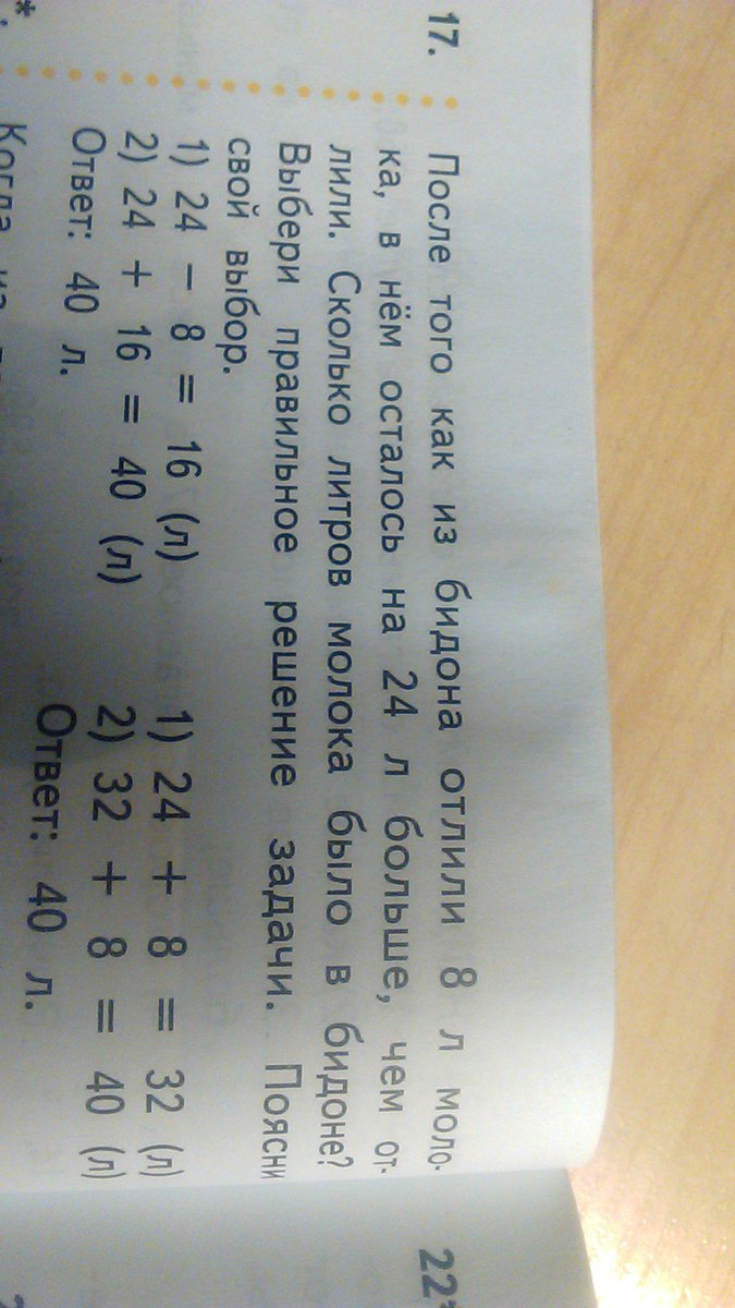 После того как из бидона отлили 8 литров молока, в нём осталось на 24 литра больше, чем отлили. Сколько литров молока было в бидоне?
