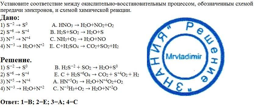 Установите соответствие между окислительно-восстановительным процессом, обозначенным схемой передачи электронов, и схемой химической реакции.