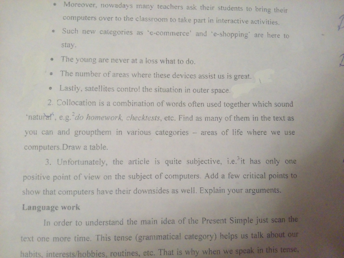 2. Collocations - комбинации слов, словосочетания, которые всегда используются вместе и звучат как "естественные" слова. Например, домашняя работа. Нужно найти как можно больше таких словосочетаний в тексте.