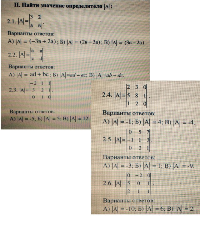 2.6 |A|=0*0*1+5*1*0+(-2)*1*2-0*0*2-1*1*0-(-2)*5*1-1*1*0=0+0-4-0-0+10-0=6 ответ б)