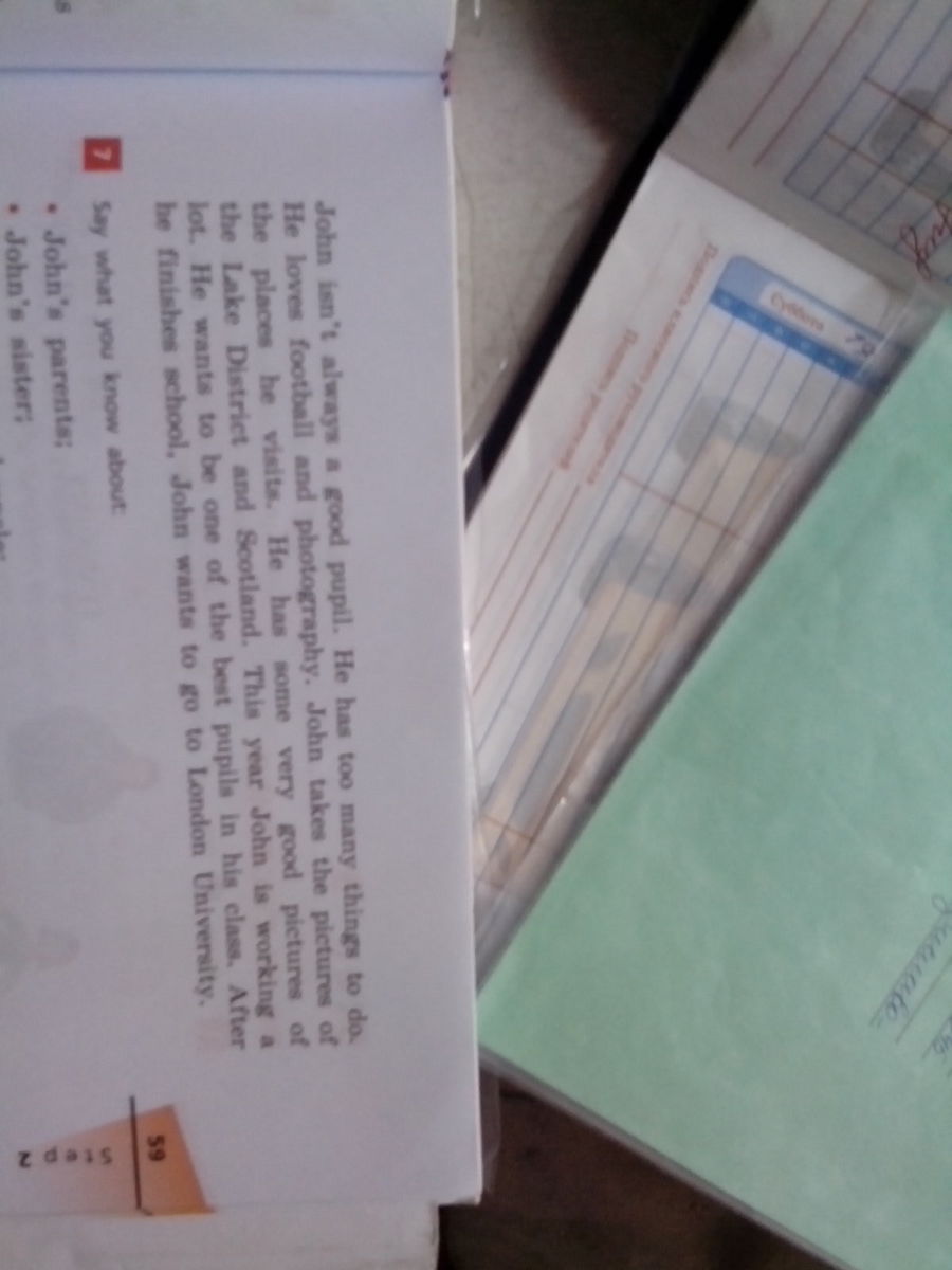 Джон не всегда хороший человек. У него очень много дел. Он любит футбол и фотографировать. Джон фотографирует места, которые посещает. У него немного очень хороших фото озера Дистрикт и Шотландии. В этом году Джон много работал. Он хочет быть одним из лучших учеников класса. После того, как Джон закончит школу, он хочет поступить в Лондонский университет