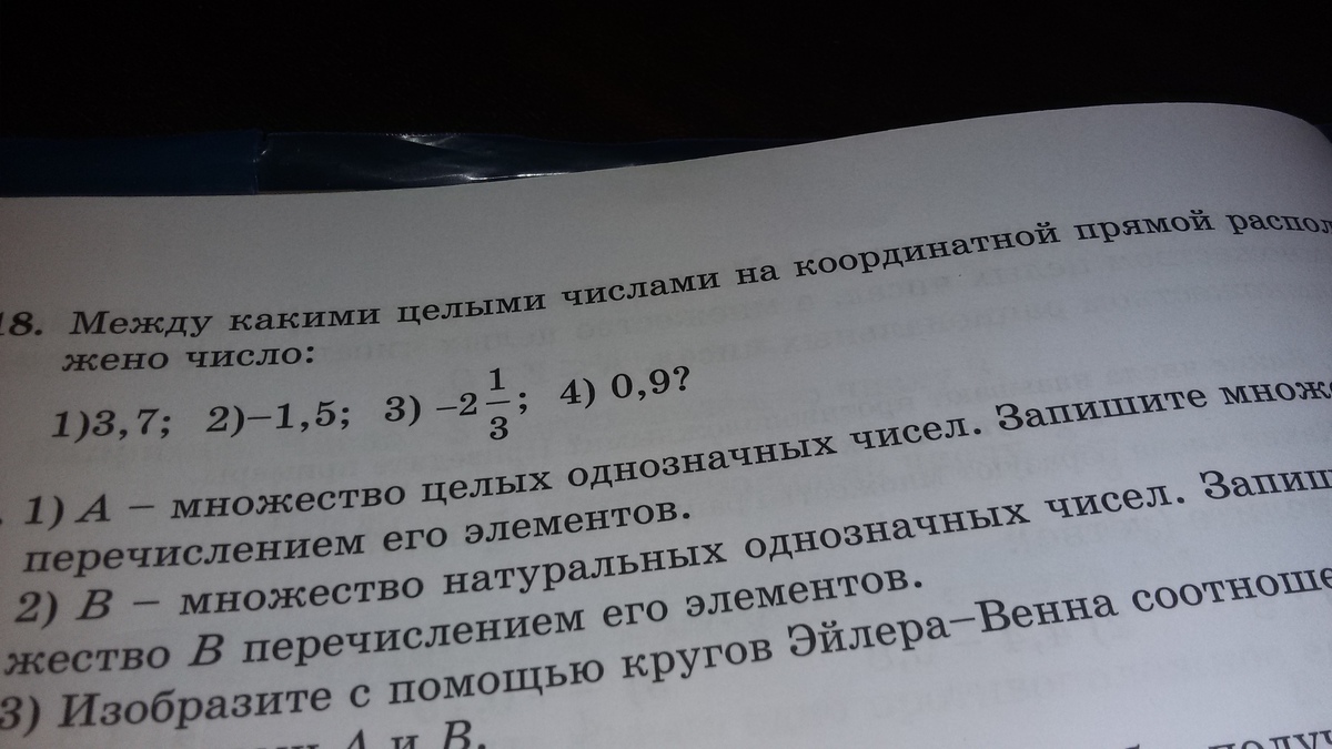 между какими целыми числами на координатной прямой расположено число: 1) 3,7 ; 2) -1,5; 3)-2 1/3 4) 0,9?