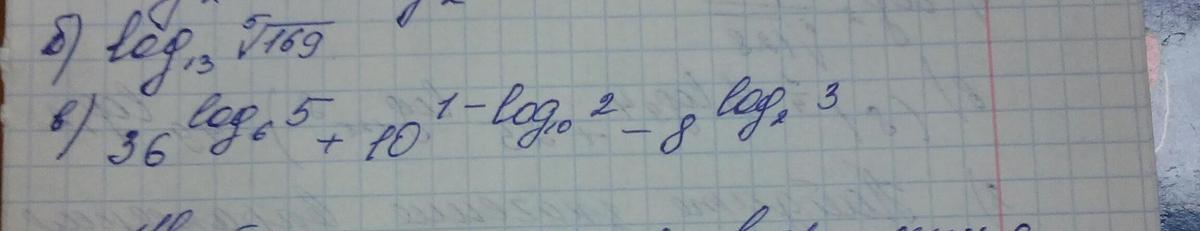 б)loq(13)(V(5)169))=loq(13)13^(2/5)=2/5