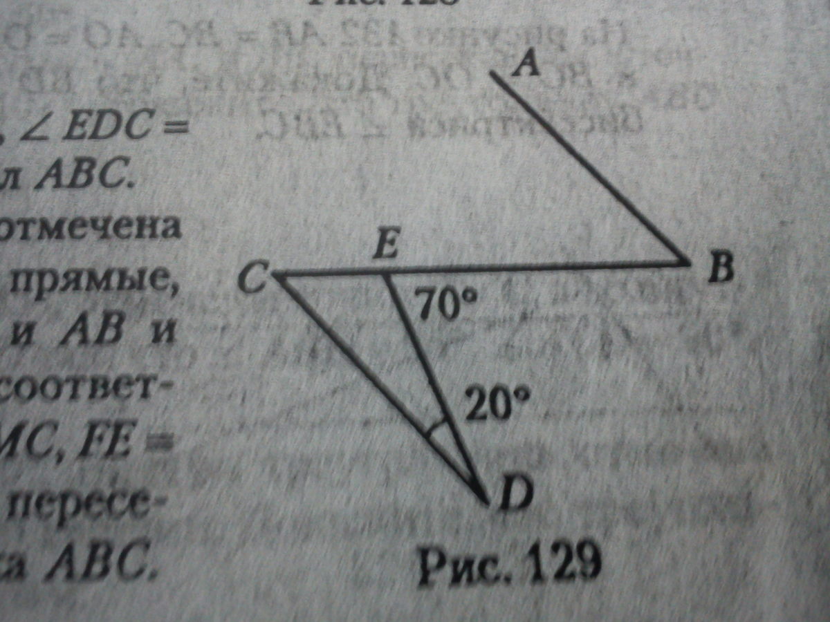 из треуг.CED угол ECD=180-20-CBD = 160-(180-70) = 160-180+70 = 50